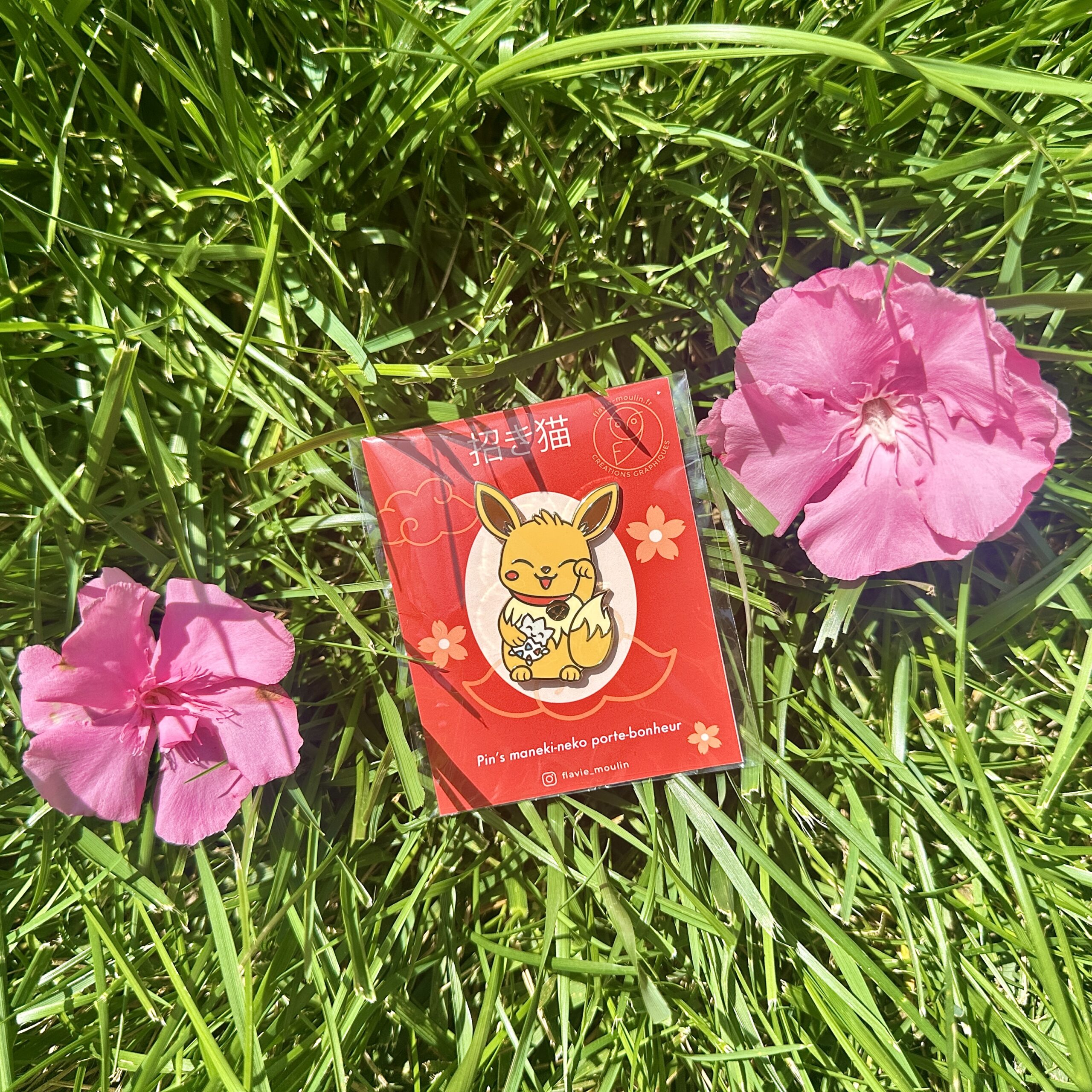 Pin’s/Broche Évoli de Pokémon inspiré par les Maneki-Neko (chat porte-bonheur du Japon)