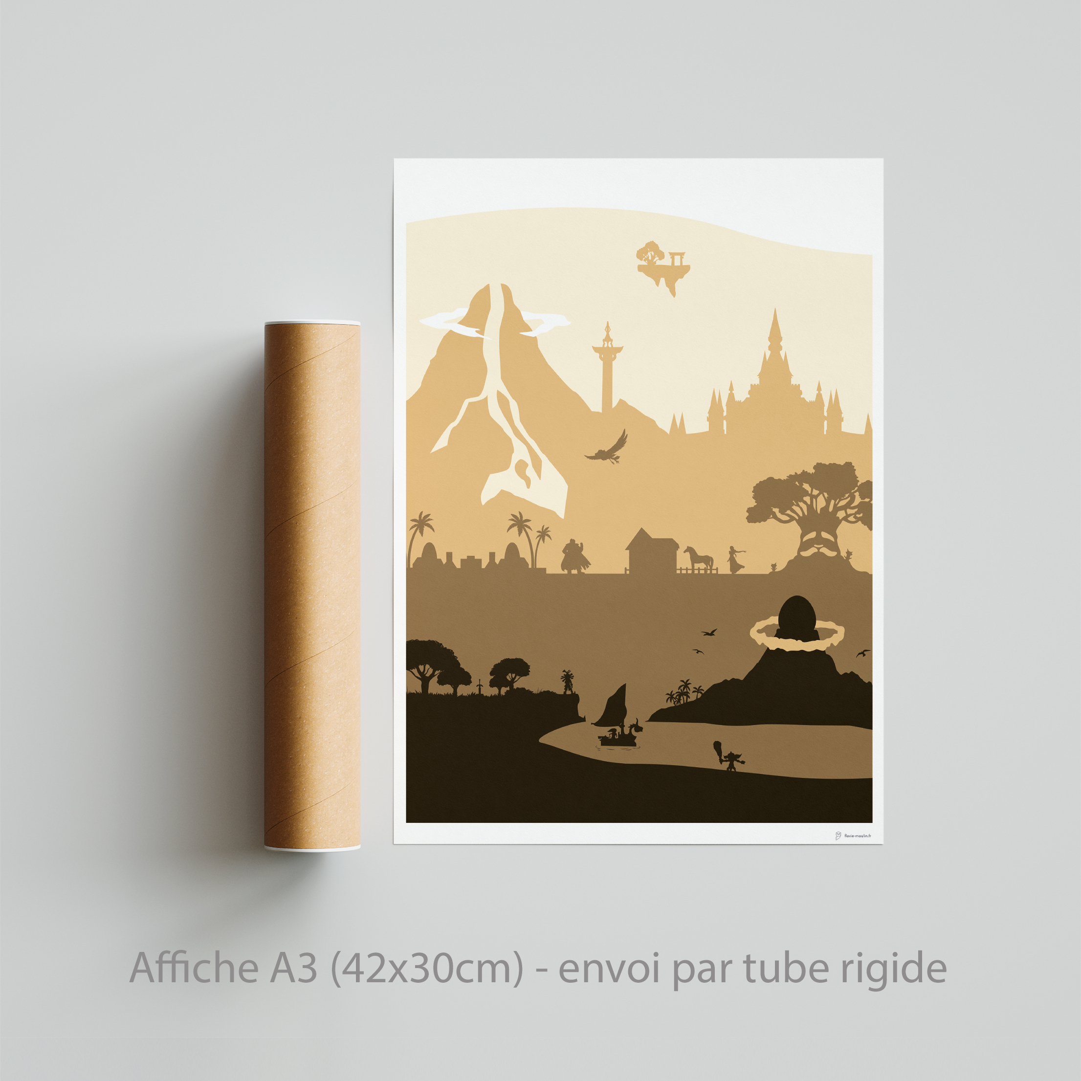 A3 (29,7 x 42 cm), A3 avec kit de suspension en bois aimanté, A4 (21 × 29,7 cm), A4 avec cadre en plexiglass, Carte Postale et enveloppe (15x10cm)